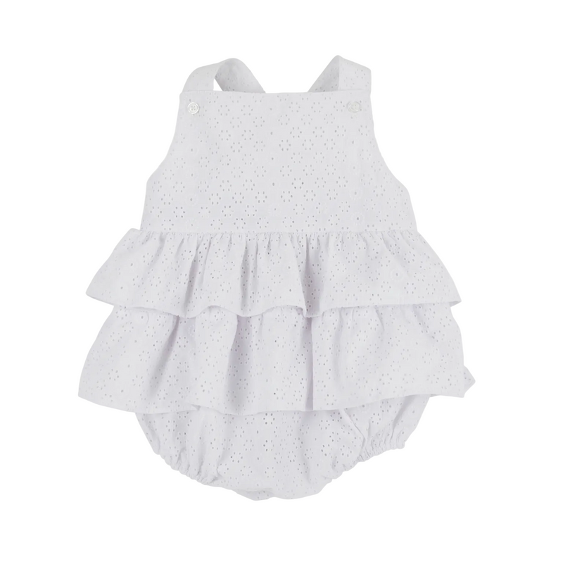 The Beaufort Bonnet Company Sandy Smocked Romper Palm Beach Pink Beale Street Blue and Worth Ave White