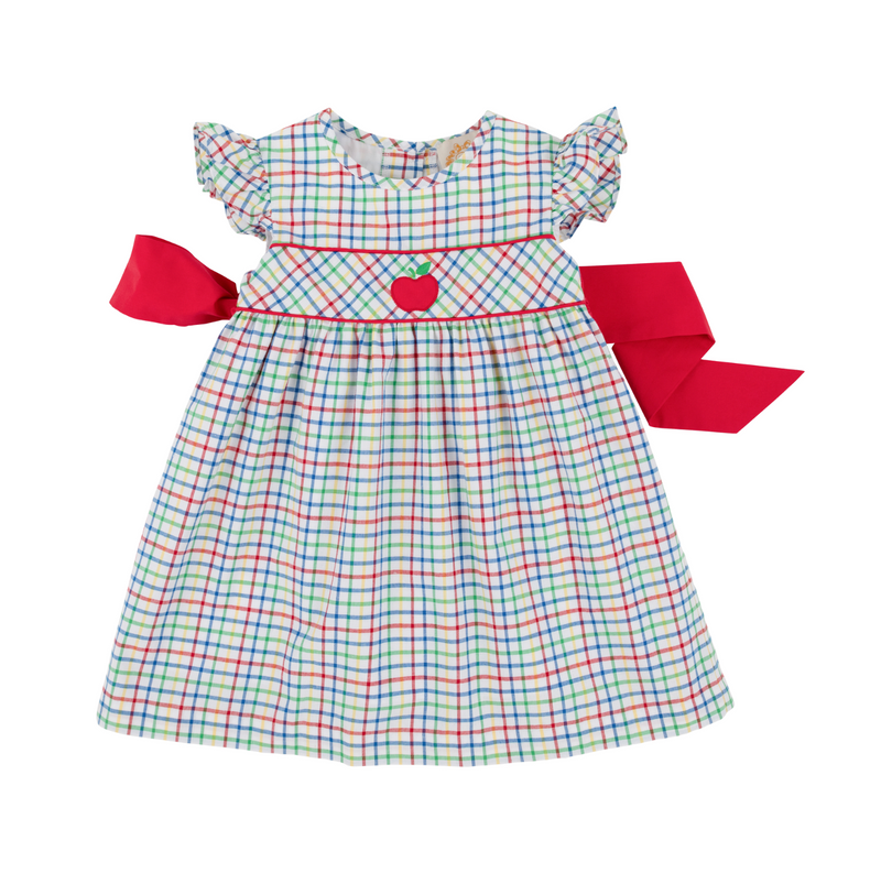 The Beaufort Bonnet Company Addie Angel Sleeve Dress Kindness Wins Windowpane/Richmond Red/Apple