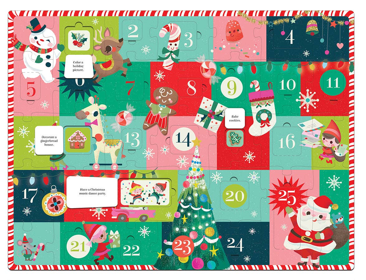 Get the whole family in the holiday spirit with this Advent puzzle! Complete the puzzle and then count down the days until Christmas by opening one numbered flap a day. Each day includes a simple activity or joke for everyone to enjoy together. Thick, sturdy cardboard pieces easily fit together. Made from recycled materials and non-toxic inks, this Eco-Friendly puzzle stores perfectly in our high-quality box.