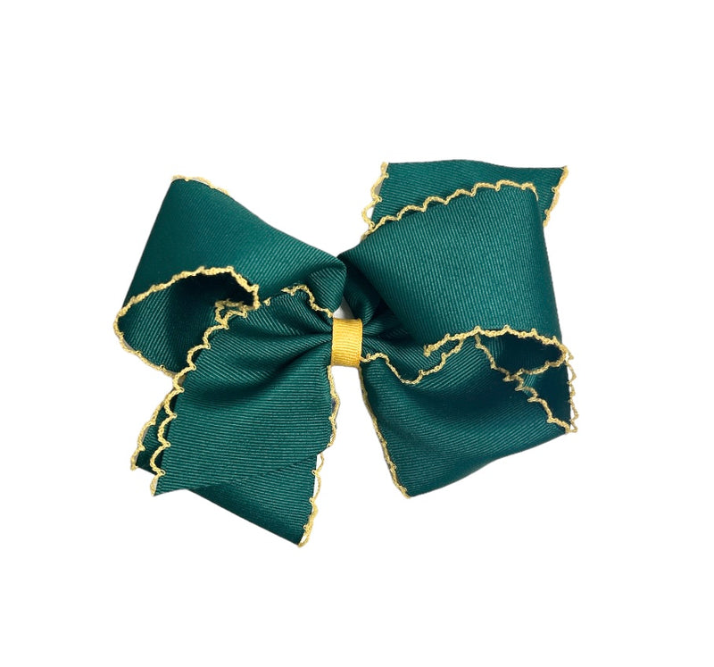 Wee Ones King Forest Green & Gold Moonstitch Bow