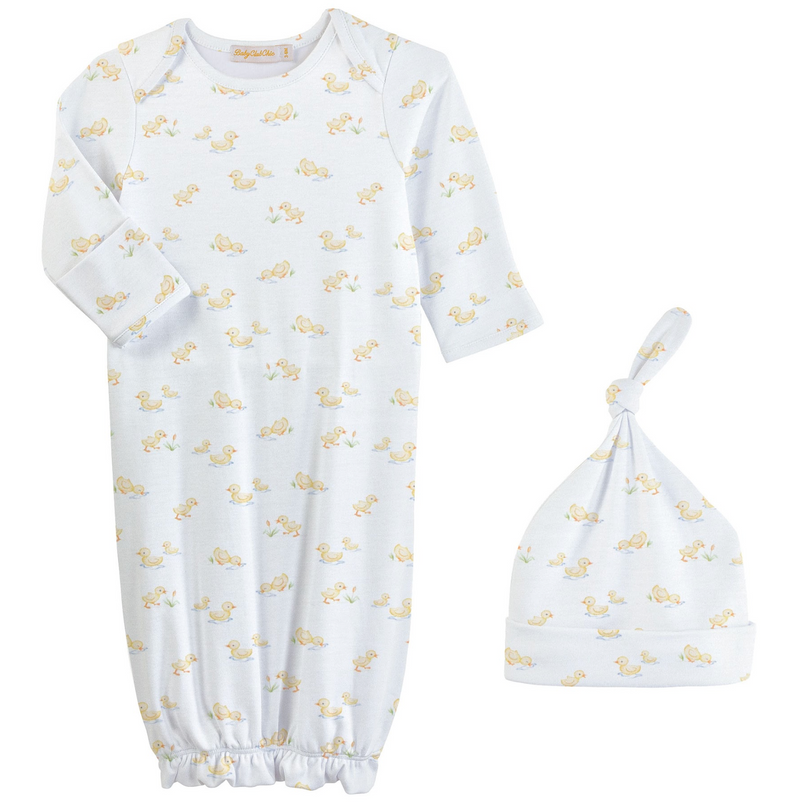 Baby Club Chic Tiny Baby Duckies Printed Gown and Hat Set