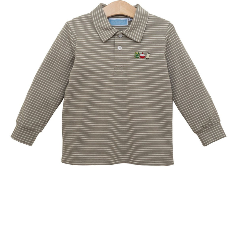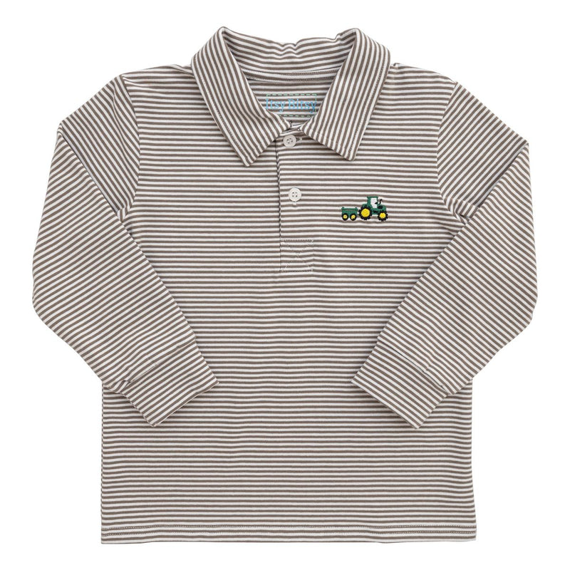 The Beaufort Bonnet Company Prim and Proper Polo LS Grantley Gray Stripe/Gray Bay Brown