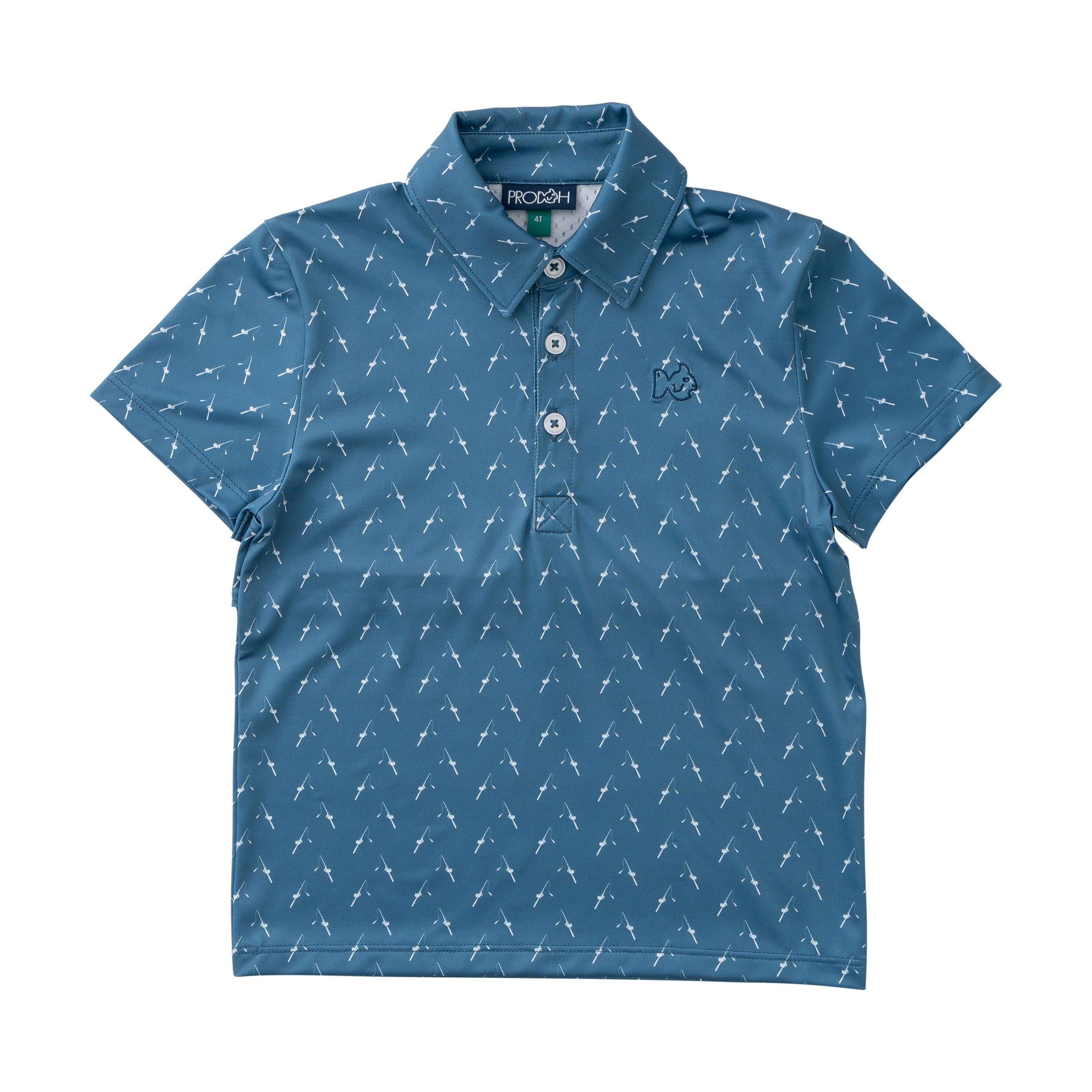 Copen Blue Fishing Rod Print Boys Pro Performance Polo