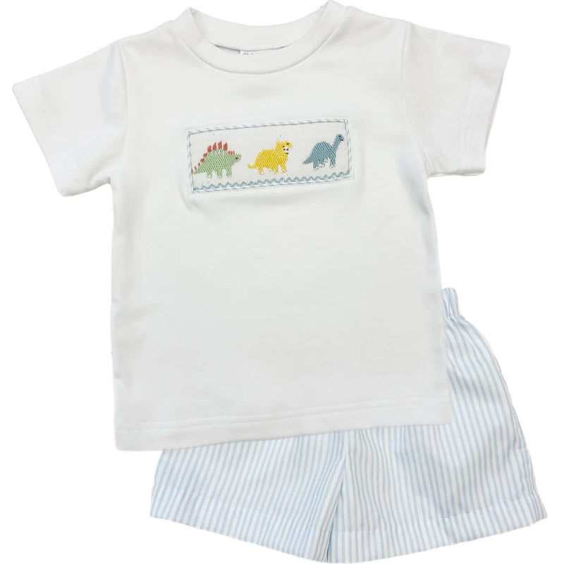 Lulu Bebe White Smocked with Blue Cross Short Set