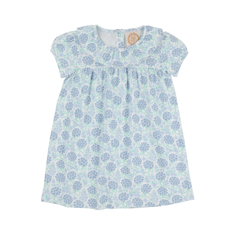 The Beaufort Bonnet Company Short Sleeve Ramona Ruffle Dress Pima Handful of Hydrangeas Worth Ave White