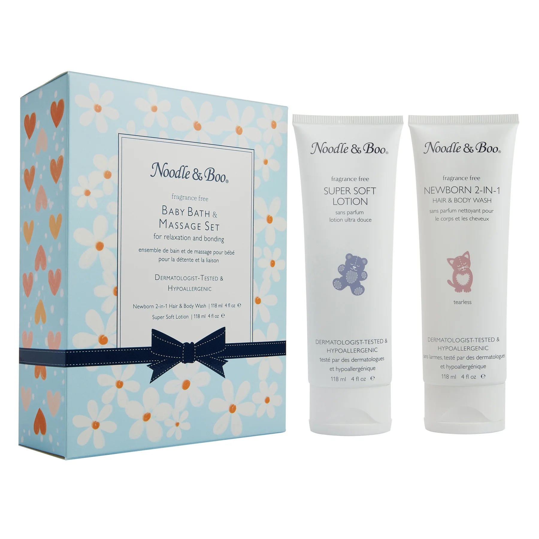 Baby Bath & Massage Gift Set - Blue Flowers