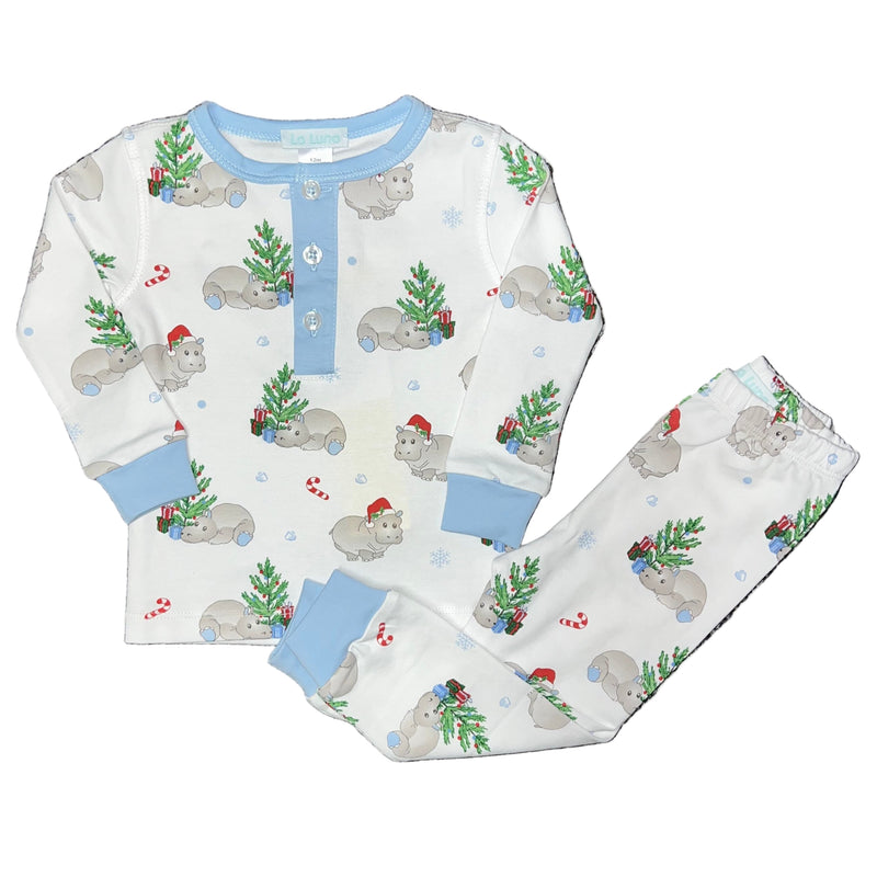 Lulu Bebe Hippopotamus for Christmas Blue Pajamas