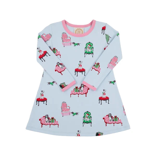Long Sleeve Polly Play Dress Paw-recious/Hamptons Hot Pink