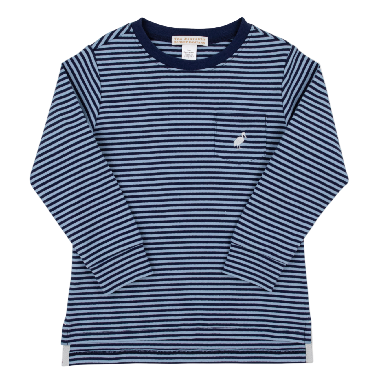 Long Sleeve Carter Crewneck Barrington Blue and Nantucket Navy Stripe