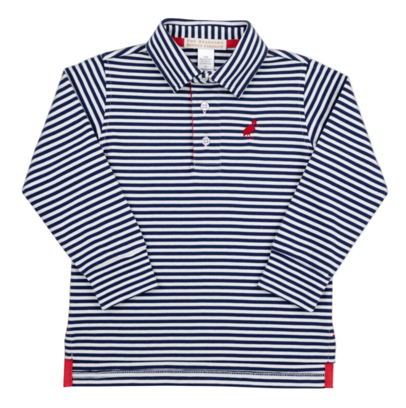 Prim and Proper Polo LS Nantucket Navy Stripe Richmond Red